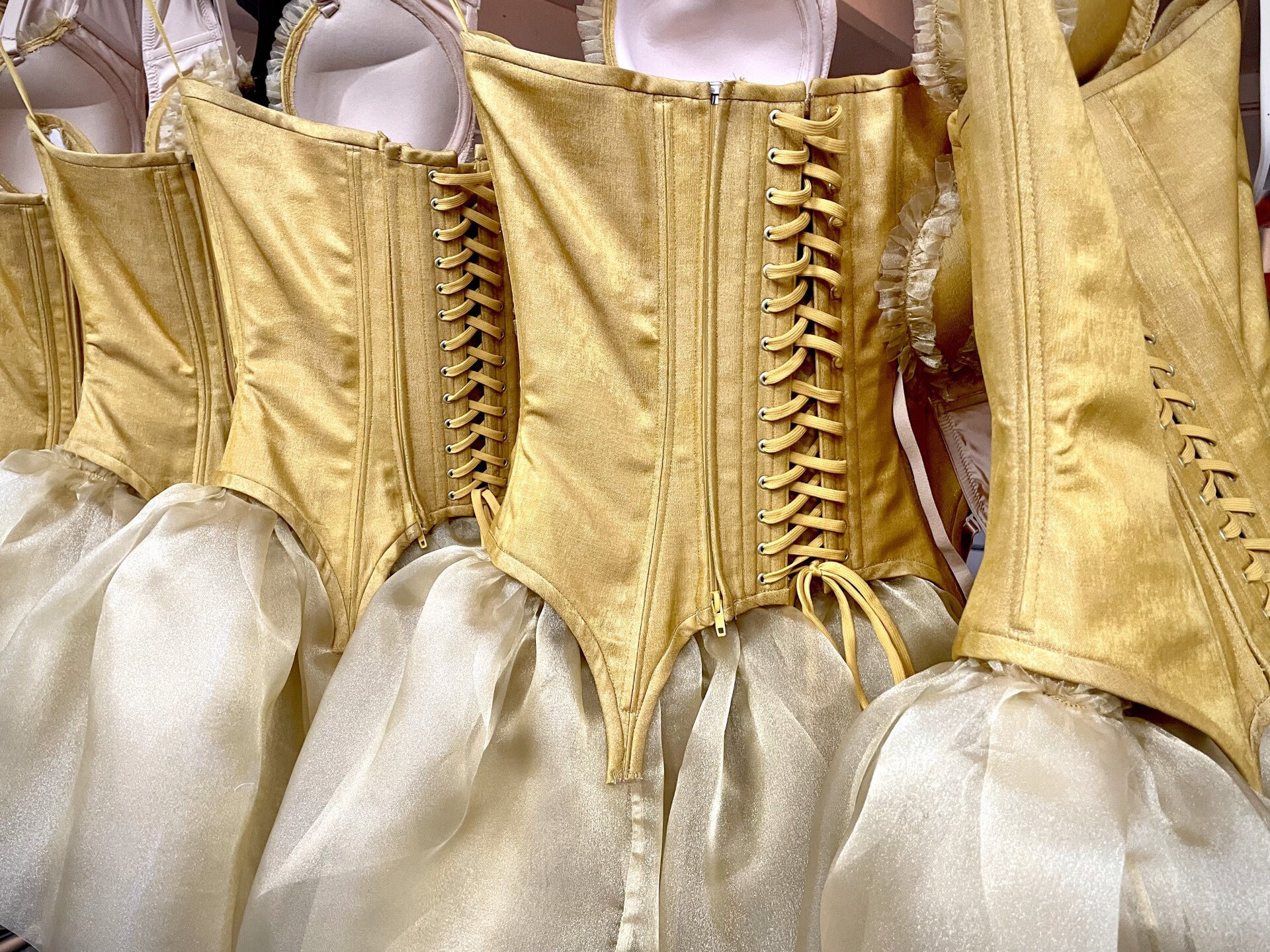 Vijf van de zes gemaakte showgirl jurken.